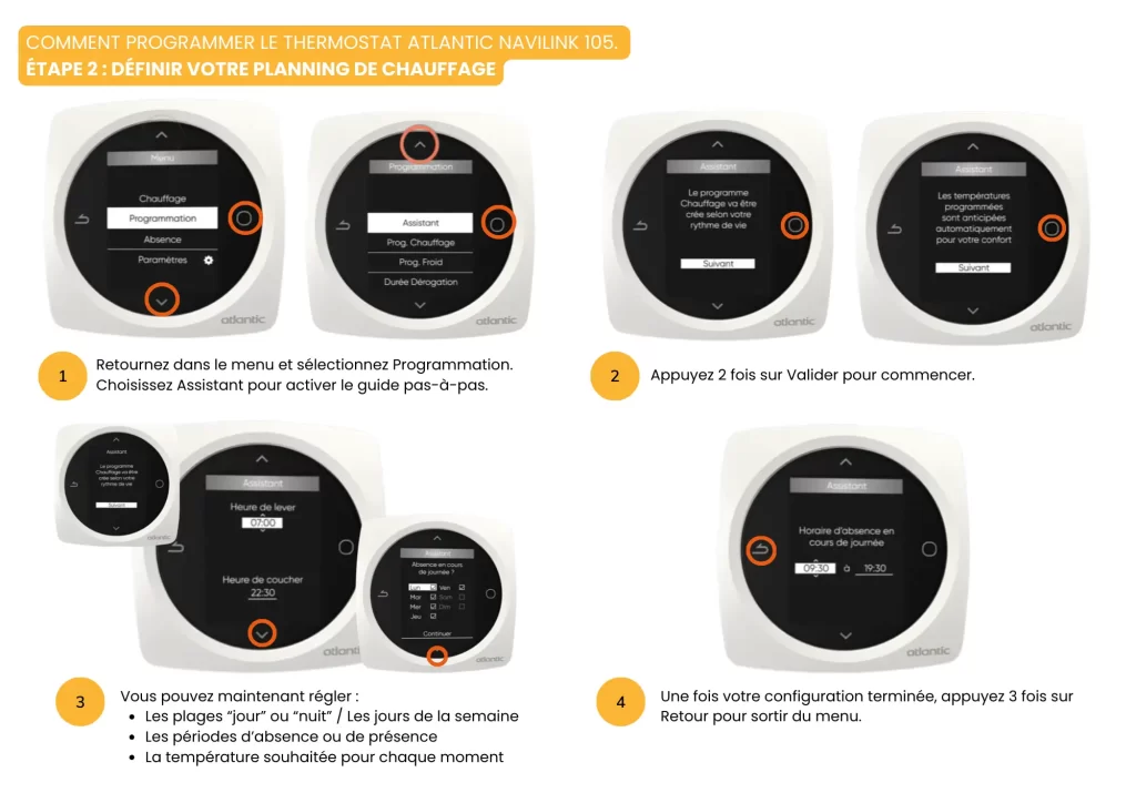 Comment paramétrer et programmer votre thermostat Atlantic Navilink 105